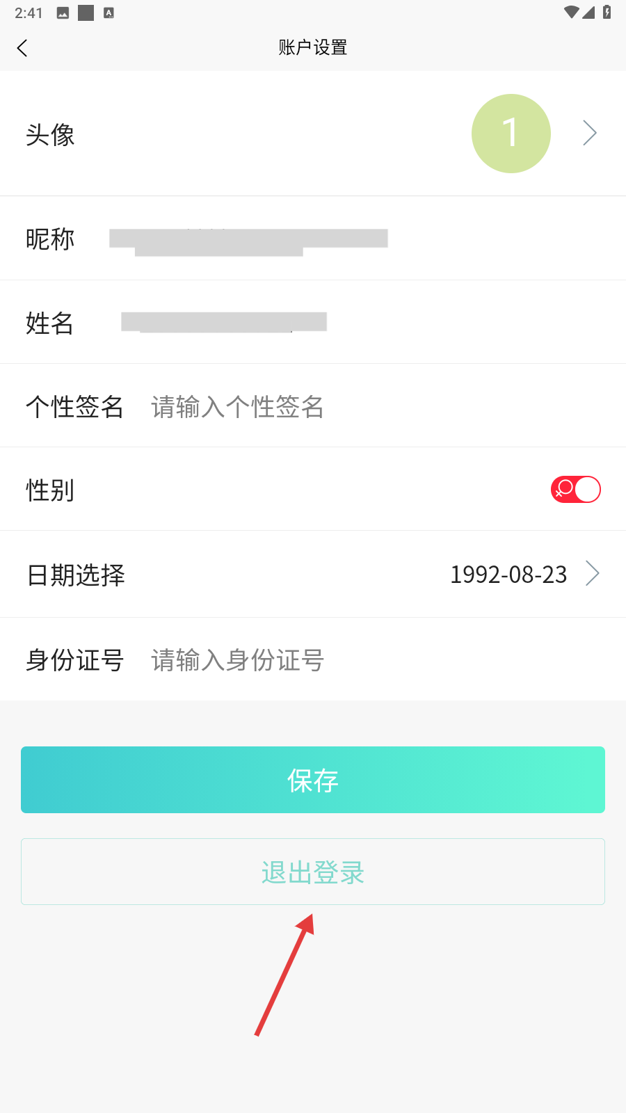 4、進(jìn)入賬戶設(shè)置頁面后,要是想退出登錄,點(diǎn)擊【退出登錄】按鈕就行呢。