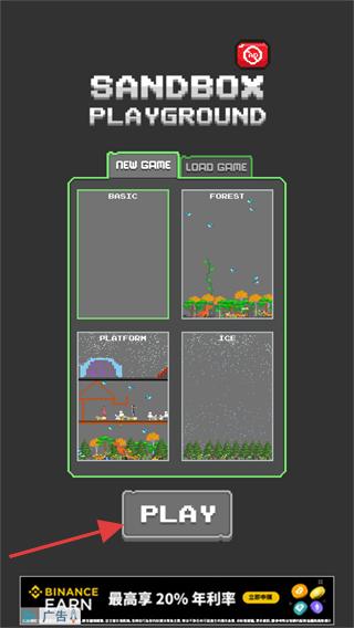 1、在【SANDBOX-PLAYGROUND】界面,點(diǎn)擊【PLAY】按鈕,進(jìn)入游戲的沙盒互動(dòng)場景。